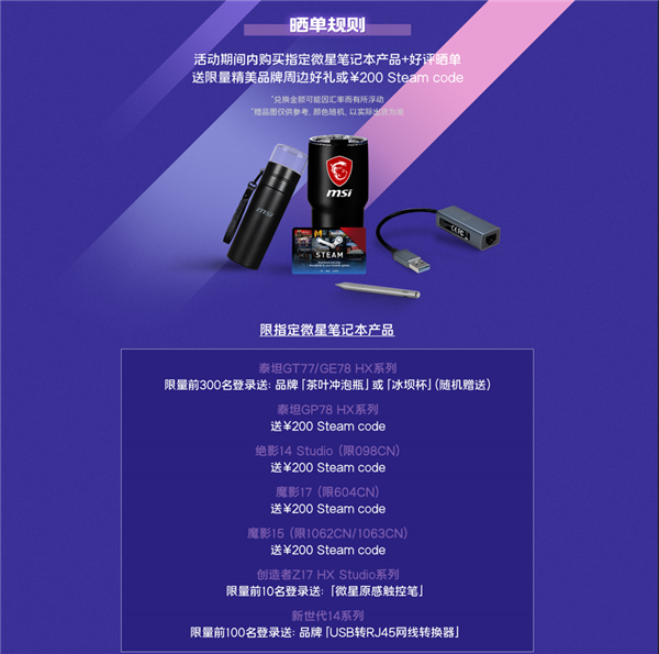 与此同时,微星笔记本好评有礼活动也将再次启动,活动期间内购买指定微星笔记本产品+好评晒单